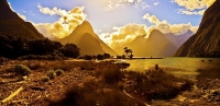 Auckland's northern motorway routing south with Rangitoto Island left of frame